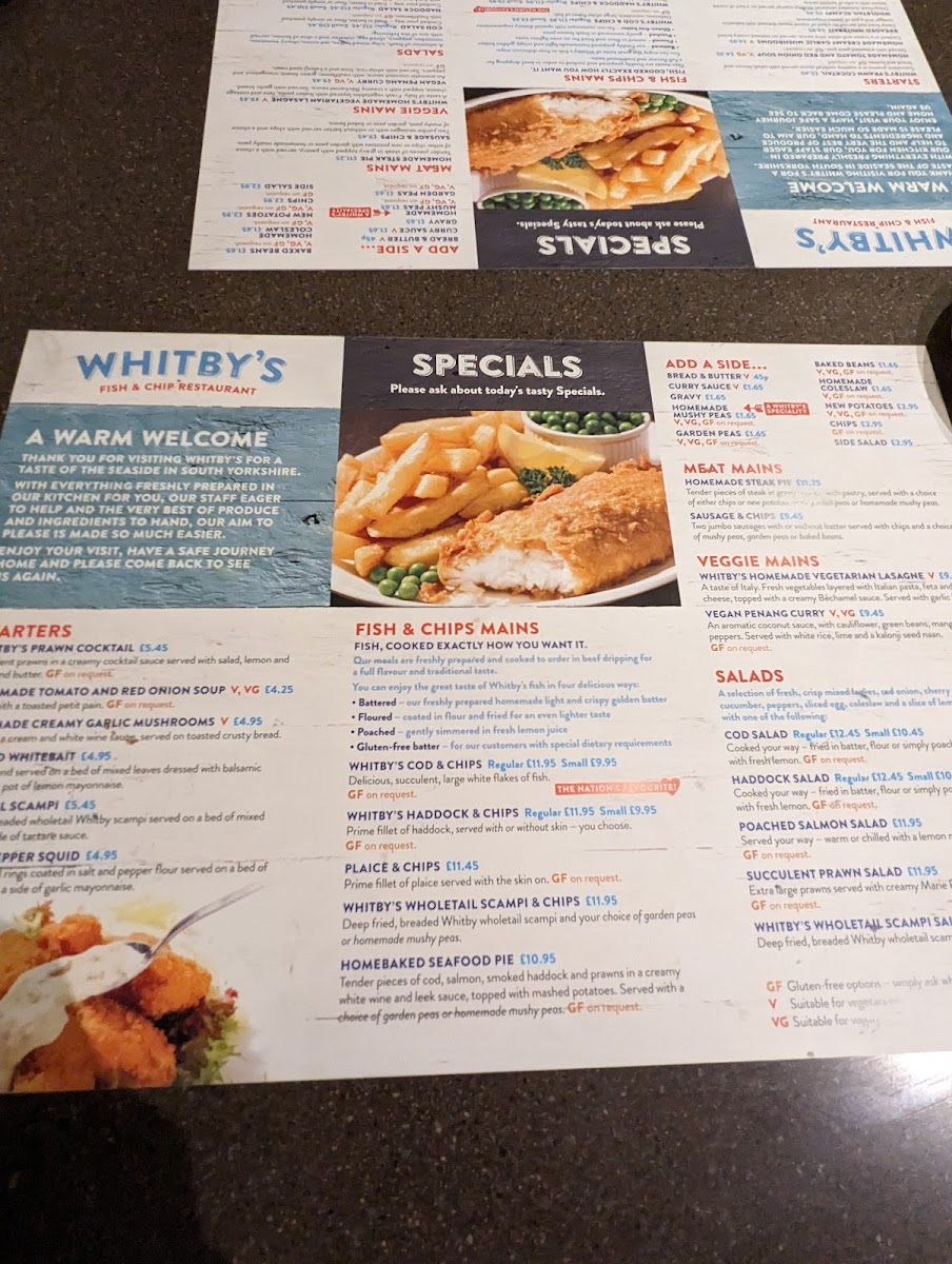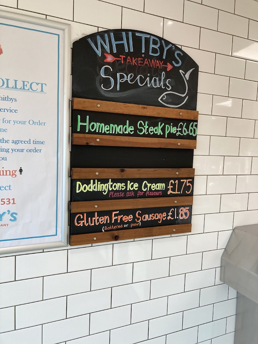 What sets Whitby's apart is its commitment to freshness and portion satisfaction. The star of the show is, of course, the haddock-crisply battered to perfection and served with hand-cut chips that retain just the right balance of fluffiness and crunch. The fish is sustainably sourced and generously sized, making it excellent value for money. For variety, diners can also choose from cod, scampi, fishcakes, or even a selection of pies for non-seafood lovers.