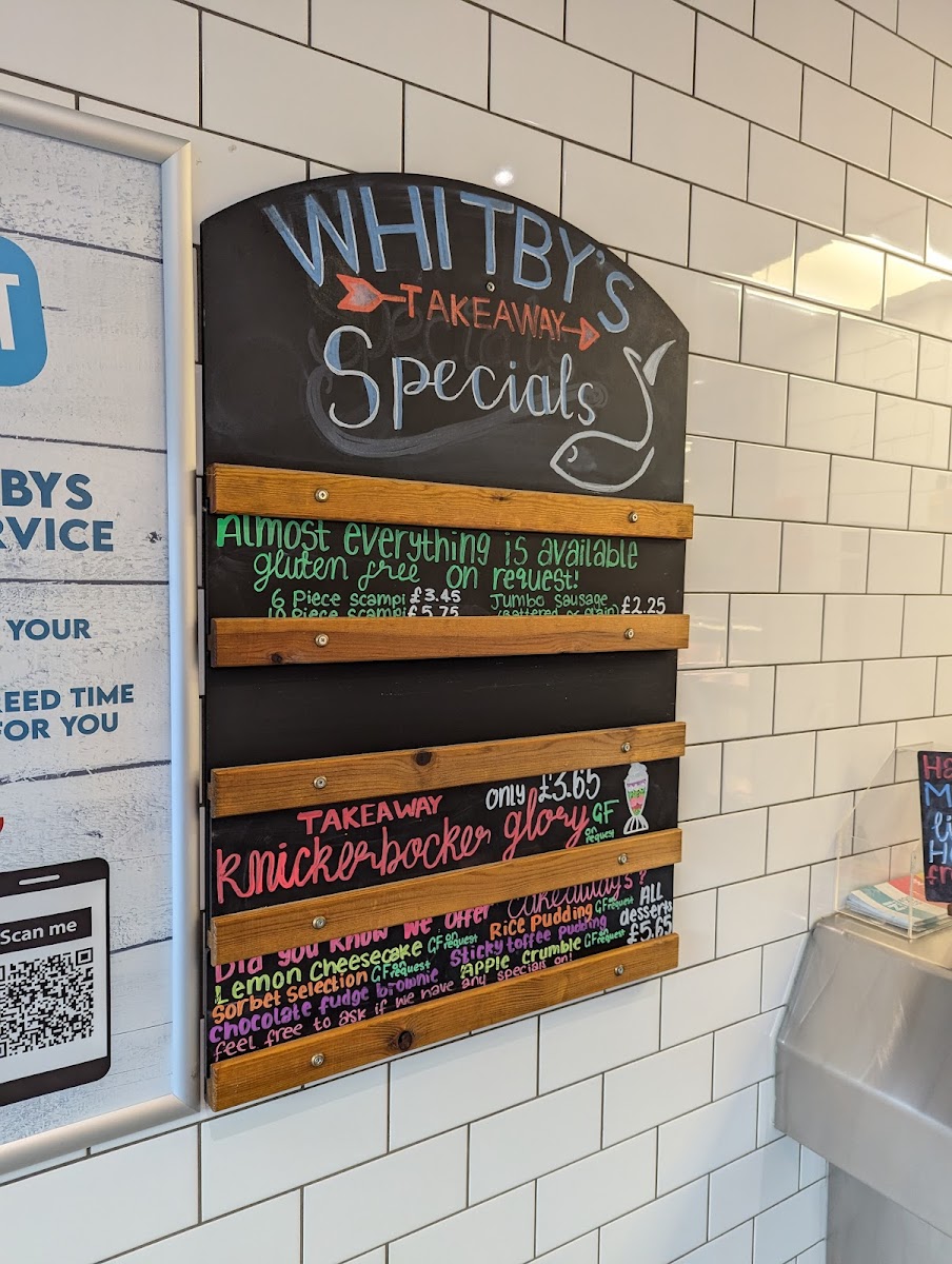 The restaurant’s clean, bright interiors and quick service enhance the appeal, particularly for families and larger groups. Unlike many high-street chippies, Whitby’s leans more toward a casual dining experience than a takeaway stop, though takeaway service is also offered.